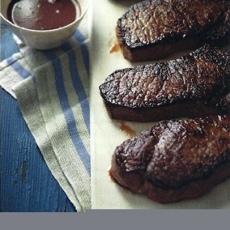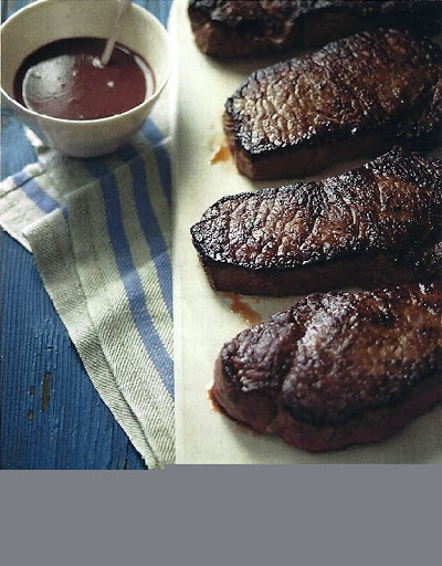 New York strip steak (also known as shell steak) is a boneless cut from the short loin, which is known for its tenderness. The red-wine sauce gets a boost from Dijon mustard.