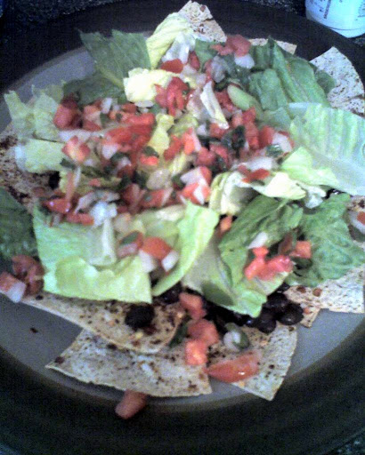 6. top tortilla chips with black beans, lettuce, pico de gallo and cheese, if you choose.