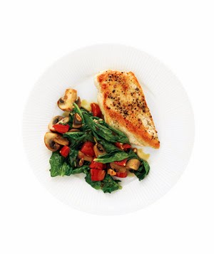5. Toss in the spinach and ½ teaspoon each salt and pepper. Serve with the chicken.