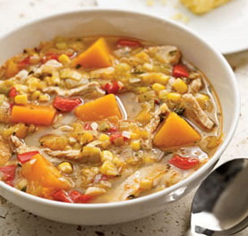 A filling turkey soup that fills you with delicious ingredients that are good for you! Enjoy lean turkey and lots of vegetables, including colorful squash.