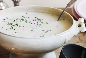 Here's an excellent example of how quick and easy it is to make a warming homemade soup. It's lusciously creamy even though it's dairy-free.