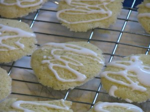 While the cookies bake, prepare the icing by mixing the powdered sugar with water and rose water.