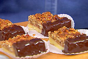 Stir in the heavy cream and pecans. Pour over the crust, trying not to get the filling between the crust and the pan.