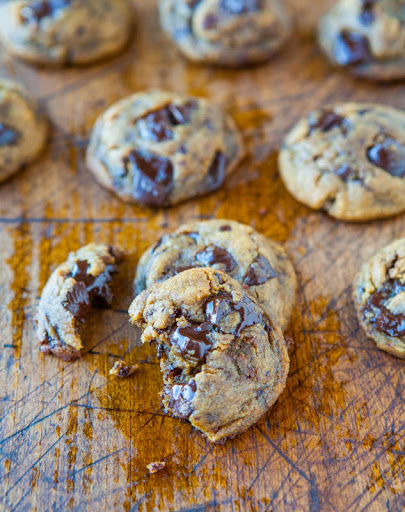 Preheat oven to 350F, line a baking sheet with a Silpat or spray with cooking spray. Place mounds on baking sheet, spaced at least 2 inches apart (I bake 8 cookies per sheet) and bake for 8 to 10 minutes, or until edges are set and tops are barely set, even if slightly underbaked in the center. Watch them very closely after 7 minutes and I recommend not baking longer than 10 minutes. Cookies firm up as they cool, and baking too long results in cookies that become too crisp and hard. The cookies in the photos were baked for 8 minutes, with trays rotated at the 4-minute mark, and have chewy edges with pillowy soft centers.