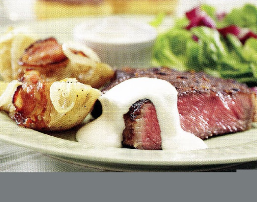 3. Transfer potatoes to 2-quart baking dish and arrange in single layer. Sprinkle with seasoned salt and pepper. Arrange onions evenly over potatoes; top with bacon. Bake 15 minutes or until potatoes are tender and bacon is browned and semi-crisp. Serve. (Makes 6 servings.)
