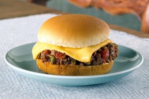 FILL buns with meat mixture and Singles.