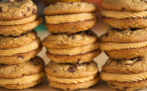 Chocolate Chip and Peanut Butter Mousse Sandwich Cookies