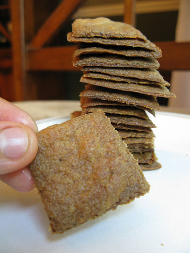 Place back in the oven and bake for 50-55 minutes, until golden brown (if you have slightly thicker crackers, this may take longer… I’ve occasionally had batches that took 70 minutes before being done). Remove from oven and let cool slightly on the pan. Move to a cooling rack (you will probably be moving fairly big pieces of several crackers stuck together). Once completely cool, you can break apart any crackers that are stuck together.