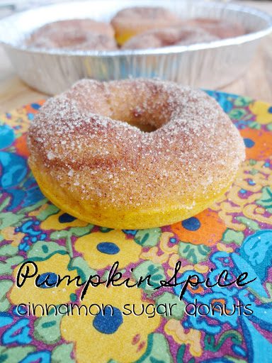 A pumpkin spice baked donut coated with cinnamon sugar.