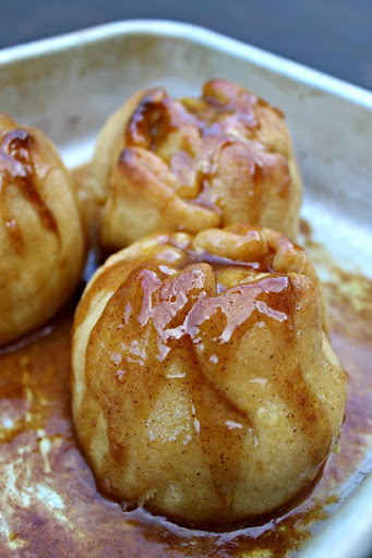 Put each apple in a lightly greased (with butter or coconut oil) baking dish.