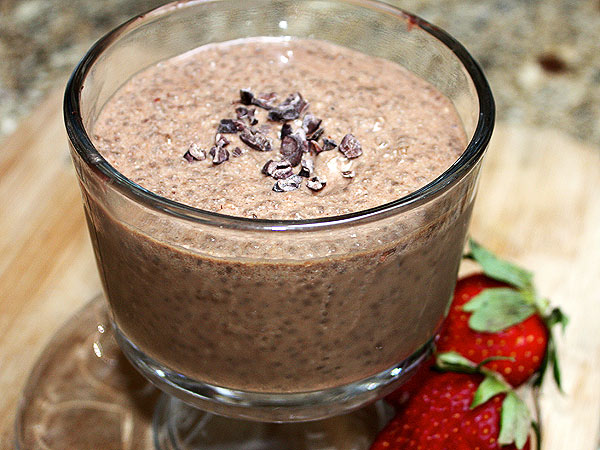 Let sit overnight or until Chia Seeds have absorbed majority of milk and have a pudding-like consistency. You may want to monitor the pudding every few hours to shake up the mixture to make sure the cocoa is fully incorporated. Top with your favorite fruit.