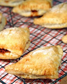 3.Preheat oven to 375 degrees.with rack in center. Brush turnovers lightly with egg wash, and sprinkle with sugar. Bake until deep golden brown and puffed, about 25 minutes. Let cool 10 minutes. Serve warm or at room temperature.