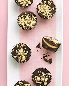3. Dividing evenly, use a spoon to layer semisweet chocolate and peanut-butter mixture into liners, beginning and ending with chocolate; sprinkle with peanuts. Place muffin pans in freezer until peanut butter cups are firm, about 15 minutes. Bring to room temperature before serving.