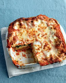 3.Lightly oil a 9-inch square baking dish. Spread one-quarter the tomato sauce in dish, top with 3 to 4 noodles, breaking to fit as needed. Top with half the ricotta mixture, half the squash, one-quarter the tomato sauce, and 3 to 4 noodles. Top with remaining ricotta mixture, cooked spinach, one-quarter the sauce, and 3 to 4 noodles. Top with remaining sauce, 1/2 pound mozzarella, and cup Parmesan.