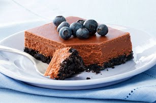 BAKE 45 min. or until center is almost set. Cool completely. Refrigerate 4 hours. Use foil to lift cheesecake from pan. Top with berries.