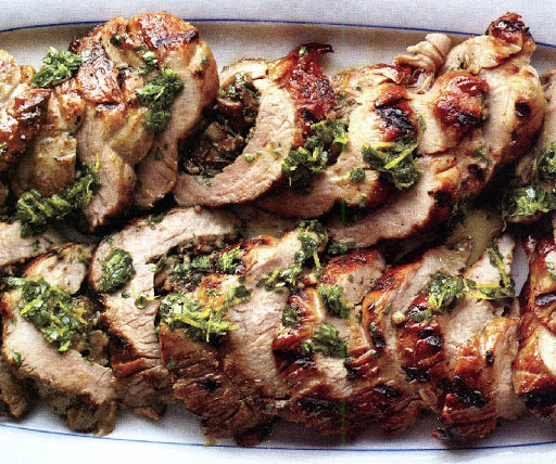 4. Preheat a grill to medium high; brush the grates with olive oil. Brush the pork rolls with olive oil and season with salt and pepper. Grill, turning, until a thermometer inserted into the center of the pork registers 140°, 25 to 30 minutes. Transfer to a cutting board to rest, about 10 minutes.