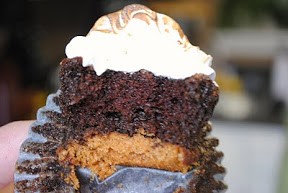 Graham cracker "crust", Hershey's chocolate, chocolate marshmallow cake, toasted marshmallow frosting... these cupcakes are the cake version of everyone's favorite campfire treat. They are fun to make and although it sounds like a lot of steps, each step is fairly simple. The "toasted" marshmallow can be achieved with a kitchen torch which is always fun to use and makes for an impressive presentation.