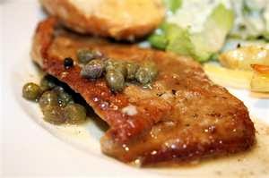 In skillet, heat oil, saute garlic, onion and veal cutlets.
