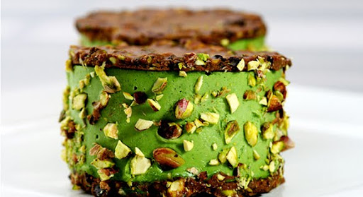 Cacao Pistachio Florentine Mint Ice Cream Sandwich