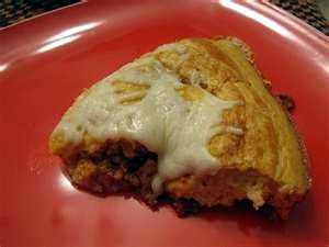 Heat oven to 400 degrees. Grease pie plate. Layer cottage and parmesan cheeses in plate. Mix beef, herbs, paste and 1/2 cup mozzarella; spoon on top. Beat milk, baking mix, eggs, salt and pepper 15 seconds in blender on high or 1 minute with hand beater. Pour into plate. Bake until knife inserted between center and edge comes out clean, 30 to 35 minutes. Sprinkle with remaining mozarella.