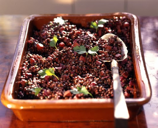 In this recipe lentils are oven roasted with caramelized carrots, beets, shallots and savory thyme. Finished with a splash of red wine vinegar and fresh parsley, the easy-to-prepare dish (no pot watching on the stove) is satisfying on its own or as a side dish.