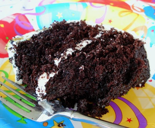 NOTE: I have tried it with 1/2 cup, 2/3 cup and 3/4 cup boiling water and we prefer it with less than 1 cup water. I usually use between 2/3 & 3/4 cups. The cake is still very moist but it doesn't seem to "fall" as much as it cools. This might have to do with our high humidity or brand of flour or other factors so I don't know if it will work for everyone.