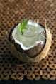 Pack a tall glass or tiki coconut mug with crushed ice.