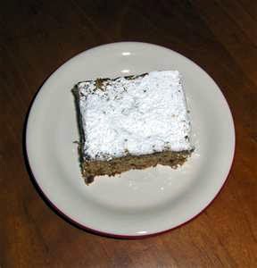 Mix together the sugar, flour, baking powder and salt. Add the dates and nuts. Then add the eggs, margarine and vanilla. Bake in an 8x10" pan for 25 minutes at 350 degrees.