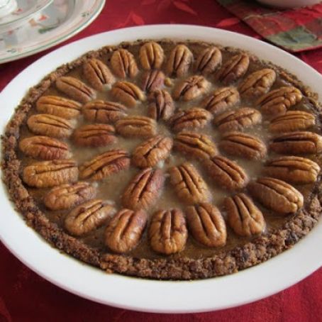 To make the topping, preheat broiler. Combine honey or maple syrup and butter in a small saucepan and cook over medium heat, stirring constantly, until it reaches a low boil. Remove from heat and stir in pecans to coat. Arrange coated pecans on top of pie and drizzle remaining topping over the pecans. Place under the broiler until bubbly and golden brown, watching carefully, about 2 minutes. Remove from oven to a cooling rack. Cool for 30 minutes before serving or cover and refrigerate.