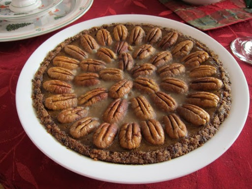 In a large bowl combine the almond flour, pecan meal, salt, baking soda and spices. In a separate bowl whisk together the coconut oil (or butter), maple syrup (or other sweetener, if using) and vanilla. Mix the wet ingredients into the dry ingredients until thoroughly combined. Press the dough into a 9″ pie pan. Bake for 15 minutes or until golden brown, remove from the oven and cool on a wire rack before filling.