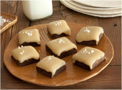 5. Pour the salted caramel sauce over the top of the brownies and chill for 2-3 hours until the caramel is set. Lightly sprinkle with the kosher salt and serve.