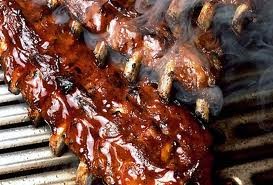 Cover the ribs with sauce, saving about 1-1/2 cups of the sauce for later use at the table. Grill the ribs on the barbecue for about 5 minutes per side, or until slightly charred. Serve with the reserved sauce.