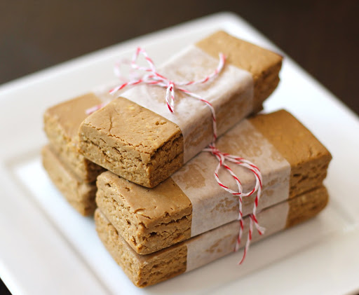 The next day, slice into bars and store in the fridge. If you are the on-the-go type, wrap each bar in parchment paper and tape to close, that way you can easily grab them out of the fridge.