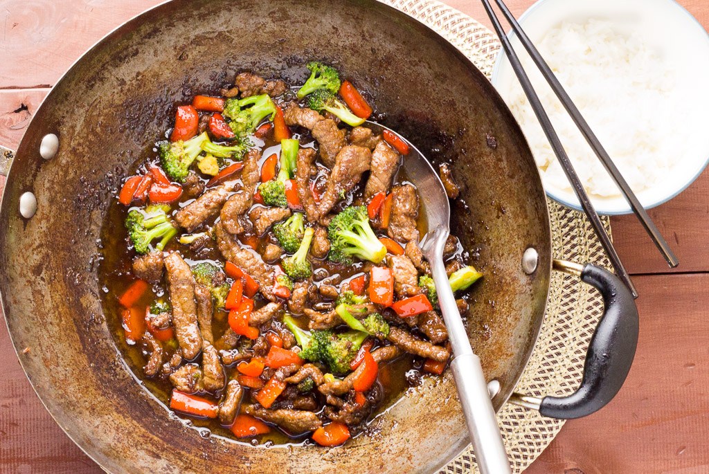 Add beef strips and cook for about 4-5 minutes or until browned. Note: cook beef in two batches for a better result. Remove from wok, set aside & keep warm.