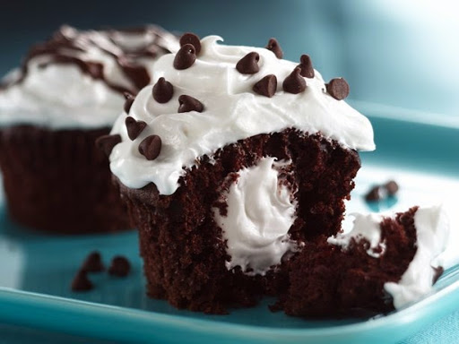 A pocket of frosting inside chocolate cupcakes makes an indulgent and delicious surprise