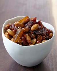 This irresistible mix of soy-and-honey-glazed peanuts, bacon and chewy glazed pineapple is the perfect complement to tiki cocktails, combining Polynesian-inspired flavors in every bite.