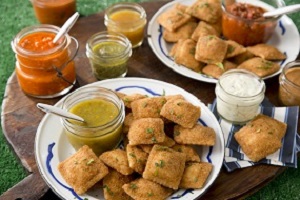 Toasted Cheese Ravioli and Orange Salsa Verde Dipping Sauce
