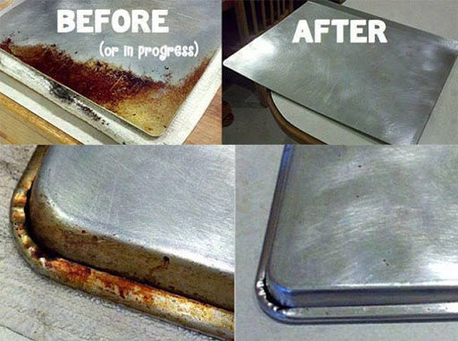 How to clean your cookie sheets -- This really works. This is an earth friendly cleaner which will get that baked on residue off your pots and pans.