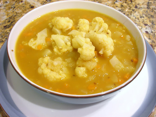 2. Bring to a boil, then simmer for about 20 minutes or until vegetables are tender. Remove from heat, then purée soup. Add coconut milk and more spices if necessary. Stir in steamed cauliflower. Serve with coconut sweet potato fries.