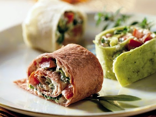 - 3 spinach-flavor, tomato-flavor or plain flour tortillas (8 to 10 inch)