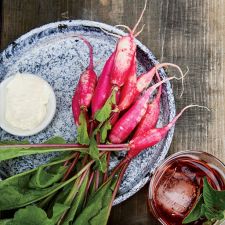 To cut the carrot and icicle radish into flower shapes, cut several lengthwise wedges out of each of these vegetables and slice them paper thin.
