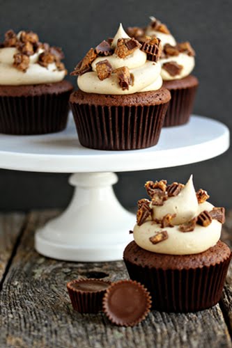 3. Pipe frosting onto cooled cupcakes and finish with chopped Reese’s Peanut Butter Cups.