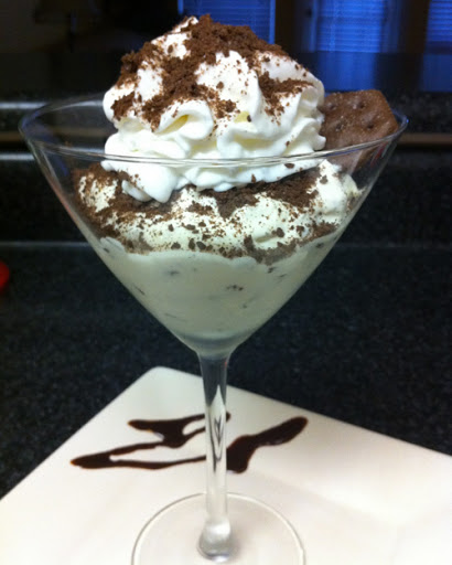 Serve with a squirt of Reddi-wip and sprinkle finely crushed cookies on top.