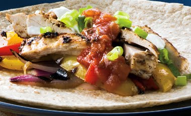 First, grill the chicken, peppers and onions on the barbecue for a smoky flavour, then have everybody assemble their own fajita—now that’s a time-saver! Be sure to lay the chicken thighs flat on the grill to speed up the cooking time.