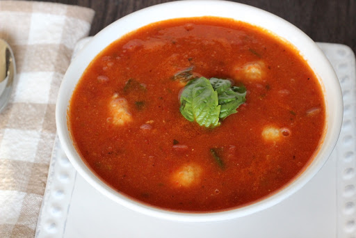 White Bean, Red Pepper and Tomato Soup with Ricotta Dumplings