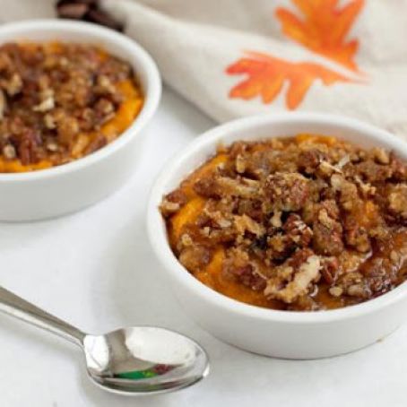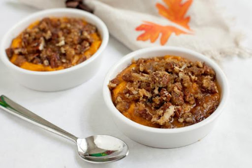 3. Put potato mixture in greased baking dish and sprinkle sugar/pecan mixture over the top.