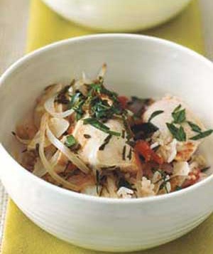 Cover the dish tightly with foil. Bake until the chicken is cooked through, about 35 minutes. Remove from oven. Let stand for 5 minutes. Spoon the rice and chicken into individual bowls. Sprinkle with additional parsley.