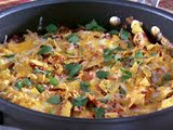 Heat vegetable oil in a large oven-safe skillet, over medium-high heat. Add onions and saute until soft. Add green chiles, diced tomatoes, leftover turkey and salsa. Adjust seasoning with salt and pepper, to taste. Top with tortilla chips and then cheese. Place skillet in oven and bake for about 20 minutes.