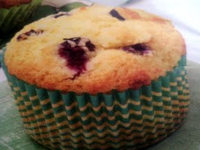 1. Line muffin pan with baking cups. Combine flour, xanthan gum, baking powder and salt. In another bowl beat together sugar (perhaps substitute sugar for applesauce) and butter; add egg, yolk and vanilla. Stir in milk and flour mixture alternately in 3 parts. Fold in blueberries.