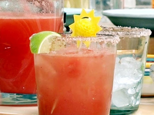 In a blender, puree the watermelon and sugar until smooth. Pour the puree through a fine mesh strainer. Transfer the liquid to a pitcher and add the lime juice, tequila and 4 ounces of the Triple Sec. Stir to combine.